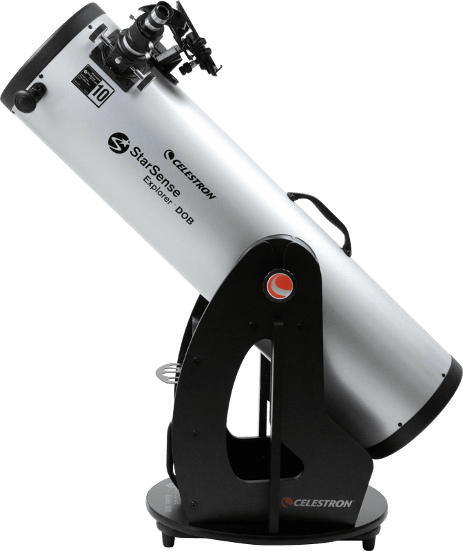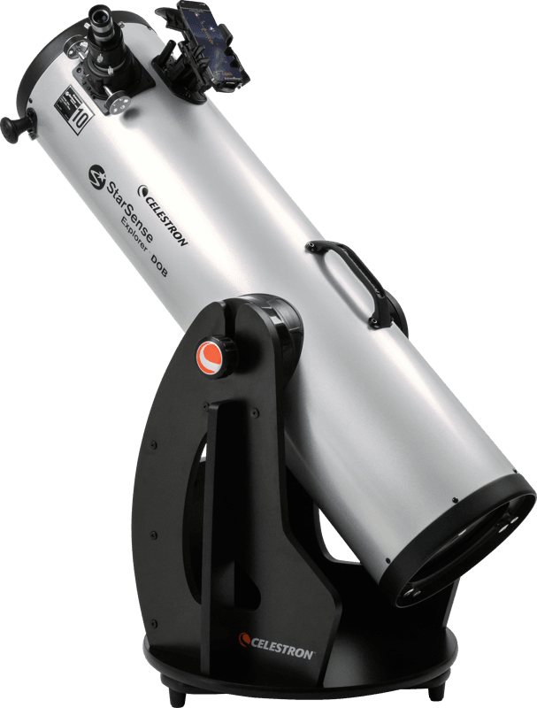 Även om du bor i en ljusförorenad stad är Celestron StarSense Explorer 10″ Dobsonian tillräckligt avancerad för att enkelt kunna urskilja Jupiter, Saturnus, öppna stjärnhopar som Plejaderna, dubbelstjärnor som Alberio, Orionnebulosan, Andromedagalaxen och fler av de bästa och ljusaste himmelsobjekten.Men om du kan ta teleskopet till en ännu lite mörkare plats kommer fler objekt att bli synliga. Med denna 10″ Dobsonian och en relativt mörk himmel är hundratals fascinerande objekt inom räckhåll för dig.Det är enkelt att transportera ditt StarSense Explorer Dobson-teleskop tack vare de ergonomiska bärhandtagen som är placerade vid tubens och basens balanspunkt. Dammskydd medföljer också för tubens framsida och fokuseraren.Bländande vyer med högkvalitativ optikDetta Newton-teleskop med en stort 10″ reflektoroptisk tub har tillräckligt med ljusinsamlingsförmåga för att få fram imponerande detaljer i himmelsobjekten samtidigt som det är otroligt bärbart. Du kan förvänta dig skarpa, ljusa vyer av Jupiters fyra Galileiska månar, dess molnband och stora röda fläck, Saturnus ringar, gasglansen i Orionnebulosan, stoftbanor i Lagunnebulosan och vår granngalax Andromeda. Jämfört med StarSense Explorer DX 130 AZ har 10-tums Dobson-teleskopet 380 % större ljusinsamlingsyta, vilket ger bättre vyer av svaga objekt.Alla spegelytor är belagda med våra XLT-optiska beläggningar för att synligt öka kontrasten och ljusgenomströmningen för ljusare vyer. Med XLT kan du urskilja subtila detaljer när du tittar på månen och planeterna samt svaga galaxer och nebulosor. Speglarna är tillverkade av optiskt glas med låg expansion, vilket bidrar till att säkerställa de bästa bilderna under föränderliga miljöförhållanden.Detta teleskop levereras också med en högkvalitativ 2” Crayford-fokusering av hög kvalitet. Crayford-designen ger exakta och smidiga rörelser utan fokusförskjutning. Det ingår också en 2″ till 1,25″ adapter och ett 2″ förlängningstub, så att du kan använda praktiskt taget alla 1,25″ eller 2″ teleskopokular med din StarSense Explorer Dobsonian. Fokuseraren har också en tumskruv så att du kan låsa in det skarpaste fokuset.Släpp loss kraften i din mobiltelefon och ta på en guidad tur till natthimlen – ingen förkunskap om stjärnkikare krävs.Den patenterade och prisbelönta StarSense-tekniken för identifiering av himlen använder din smartphone för att analysera stjärnmönster över himlen och beräkna teleskopets position i realtid.En stor 10″ parabolisk primärspegel med XLT-beläggningar hjälper dig att utnyttja StarSense-tekniken på bästa sätt. Lokalisera svaga, djupa objekt på himlen på några sekunder och se dem mer detaljerat än någonsin tidigare.En robust bas i Dobson-stil med lager med stor diameter och variabel höjdspänning gör det enkelt att följa pilarna på skärmen till önskat mål. När bullseye blir grönt är det redo att ses i teleskopets okular.StarSense Explorer-appen genererar automatiskt en lista över objekt som för närvarande är synliga. Visa planeter, ljusare nebulosor och galaxer, stjärnhopar och dubbelstjärnor från staden. Eller ta med teleskopet till mörkare himlar för att se ännu mer.Innehåller ett 25 mm Plössl-okular, en 2″ Crayford-fokusering, StarSense smartphone-dockapparat, ett StarPointer™ rödpunktsökarsikte, ett okularställ och ett kollimationsverktyg.Docka, starta, utforskaNu slipper du komplicerade stjärnkartor, opålitliga planetariumappar och datoriserade monteringar. Tack vare StarSense Explorer har det aldrig varit enklare att hitta objekt så snabbt och exakt. Du kommer att navigera på himlen med självförtroende inom bara några minuter efter att du ställt upp teleskopet. Placera helt enkelt telefonen i den unika StarSense-dockan och starta StarSense Explorer-appen.När du har ställt in telefonen på teleskopets optik (en snabb och enkel procedur) genererar StarSense Explorer en lista över synliga himmelsobjekt. Gör ditt val och pilar visas på skärmen som guidar dig när du rör teleskopet. När objektet är redo att ses i okularet blir bullseye grönt. Medan du observerar kan du lyssna på hundratals ljudbeskrivningar och se detaljerad information om tusentals objekt i appens robusta databas.Högkvalitativ Altazimuth-basEn ultrastabil Dobson-bas ger en stabil grund för StarSense Explorer. Den har höjdlager med stor diameter och variabel spänning, azimutlager av teflon och stöttor på sidopanelerna för extra stabilitet (till skillnad från de flesta 8-tums Dobson-baser). Höjdlagren ger en jämn upp- och nedgående rörelse medan det integrerade “bromssystemet” för höjd gör att du kan justera spänningen längs höjdaxeln för en jämnare rörelse även vid små obalanser.Panoreringsknappen på teleskoptuben ger ett ergonomiskt grepp så att du kan rikta teleskopet exakt utan att värme från händerna kommer in i det optiska systemet. När himmelsobjekten tycks driva över natthimlen kan du enkelt följa dem med små justeringar av teleskopets position.**Kompatibilitet med smarttelefoner **Celestron StarSense Explorer fungerar med de flesta moderna smarttelefoner, inklusive iPhone 6 och senare, och de flesta enheter med Android 7.1.2 eller senare som tillverkats sedan 2016. För en fullständig kompatibilitetslista, [klicka här] (http://starsenseexplorer.simcur.com/).Patenterad StarSense Sky Recognition-teknikStarSense Explorer använder patenterad teknik och din smartphone för att avgöra exakt var teleskopet är riktat på natthimlen. En LISA-algoritm (Lost in Space Algorithm), liknande den som satelliter använder i omloppsbana för att orientera sig korrekt, hjälper appen att matcha stjärnmönster som den upptäcker ovanför huvudet med sin interna databas.Även om andra astronomiappar hävdar att de kan hjälpa dig att hitta objekt, förlitar de sig uteslutande på telefonens gyro- och accelerometrar s