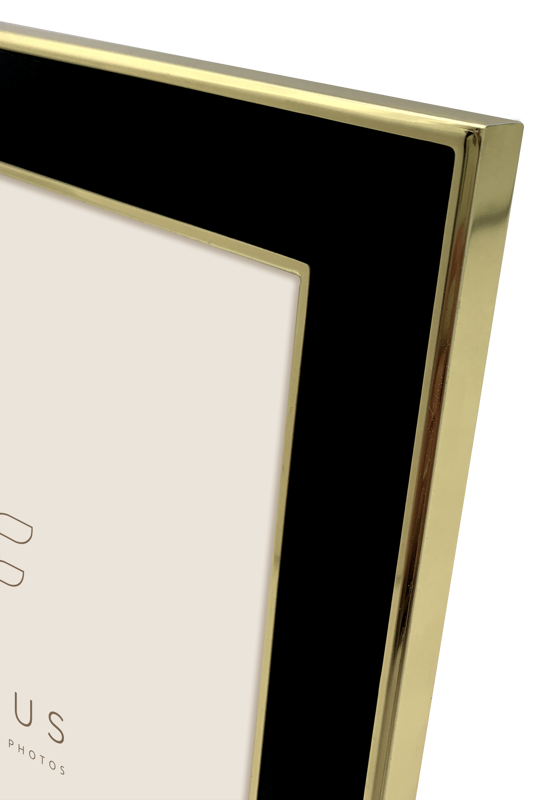 En utmärkande egenskap hos Magnolia är den mjuka emaljytan, som ger en blank, porslinsliknande glans till metallstrukturen. Den tunna guldfärgade kanten längs både inner- och ytterkanterna ramar in din bild med en raffinerad touch av värme och tillför precis rätt mängd ljusstyrka och sofistikering. Det svarta emaljskiktet ger en fräsch och neutral duk som förbättrar ett brett utbud av interiörstilar – oavsett om du skapar en modern gallerivägg eller accentuerar en klassisk vinjett.Magnolia har en front i äkta glas för klar sikt och långvarigt skydd av bilden. Ramen är utrustad med ett stafflistativ som möjliggör både vertikal och horisontell bordsdisplay samt väggmontering.Nyckelfunktioner:Tillverkad av metall med en blank svart emaljbeläggningEleganta guldfärgade detaljer på både inner- och ytterkanternaSmal profil: 5 mm bred | 8,3 mm djupReal glasfront för optimal klarhet och skyddBakstyckeKan visas både vertikalt och horisontelltMagnolia-ramen förenar minimalism och glamour i perfekt harmoni – perfekt för att visa upp omhuldade foton, moderna tryck eller tidlösa konstverk i alla vardagsrum.