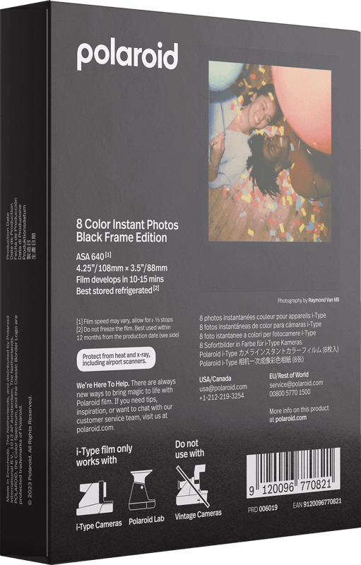 Med denna specialfilm för kameror av I-typ kan du skapa klassiska färgfoton med en klassisk svart ram. **Endast för kameror av I-typ, t.ex. OneStep2 & Now (inte för Vintage-kameror).* * * * Egenskaper * * – I-Type film med svart ram – ISO 640 – Foton framkallas på 10-15 min