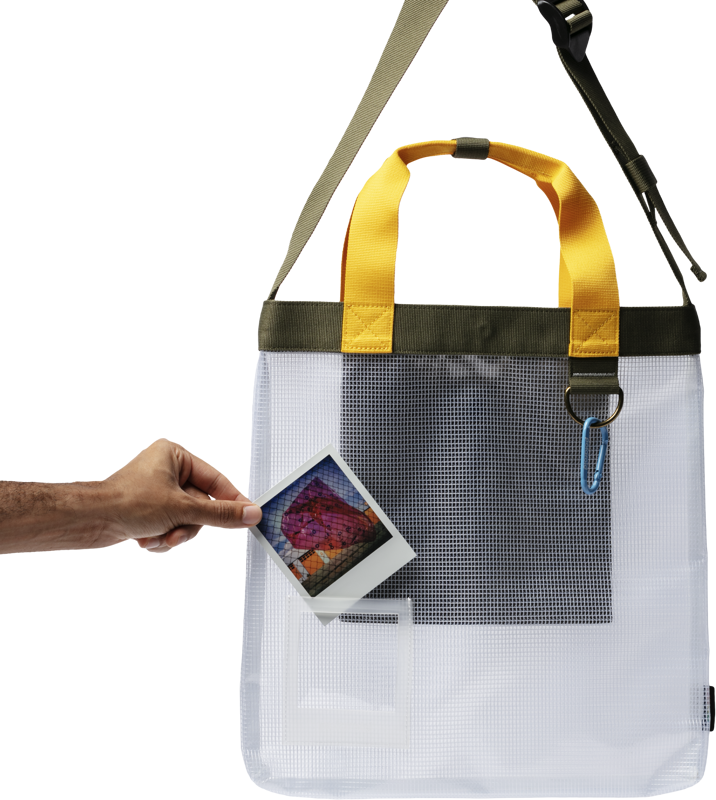 Med Polaroids signaturfärger och en displayhållare som låter dig anpassa den med ett Polaroid-foto, vilket gör den helt unik. Visa din söta hund, ditt senaste semesterfoto eller det fantastiska landskapet du tog. Det är upp till dig.Hållare för polaroidbilderTjockt handtag och bärremJusterbar axelremPolaroid-märkningYttermaterial av återvunnen ripstopFoder av polyesterCentrerad tryckknappsfästningFäste för karbinhakeT-formad baskonstruktionSvart väska i 100% polyesterMått: L 360mm x H 470mm x D 15mm