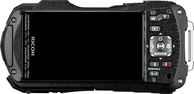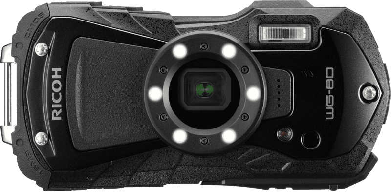 Ricoh WG-80 har en förnyad exteriör design och förbättrad funktion. Den har en robust och robust konstruktion och exceptionell prestanda. Den är vattentät upp till 14 meter i upp till två timmar, köldtålig ner till -10°C, stöttålig ner till 1,6 m och brottsäker ner till 100 kg.
