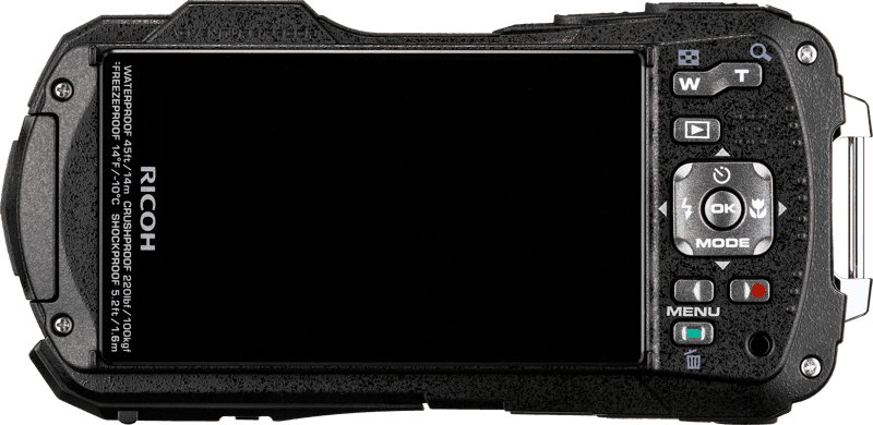 Ricoh WG-80 har en förnyad exteriör design och förbättrad funktion. Den har en robust och robust konstruktion och exceptionell prestanda. Den är vattentät upp till 14 meter i upp till två timmar, köldtålig ner till -10°C, stöttålig ner till 1,6 m och brottsäker ner till 100 kg.