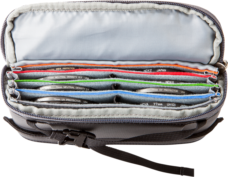 Vad passar – Filter NestFilter Nest består av två påsar i en och kan bära upp till åtta runda filter (upp till 82 mm) inklusive 2 variabla ND i orange avdelare, stegringar, rengöringsduk, objektivskydd, linspenna och mer.Med sin vadderade påse med dragkedja skyddar Filter Nest känsliga filter mot damm och repor ute i fält eller använd den “avtagbara insatsen” för kompakt packning.Nyckelfunktioner:Den vadderade fickan med dragkedja ger optimalt skydd i fältet”Avtagbar insats” är idealisk för kompakt packningFärgkodning förbättrar organiseringen, passar 8 runda filter inklusive 2 variabla ND och eliminerar plastfodral i väskanYtterligare funktionerFilter Nest är bältesmonterbar och kompatibel med de flesta MindShift Gear-ryggsäckar för att snabbt komma åt filter medan du sätter upp för att fota. Dessutom ger grab-handtaget med SR-spänne fotografer möjlighet att hänga Filter Nest från ett stativ som passar arbetsflödet för snabba filterbyten när hastigheten räknas.Bältesmonterad för att ge snabb åtkomst till filter när du ställer in för en bild (Kompatibel med r180° Panorama, Horizon eller r180° Pro)Handtag med SR-spänne gör att du kan hänga Filter Nest från ett stativ för snabb åtkomstFramficka med dragkedja passar en objektivdukSpecifikationerExtern påse:20,5 x 11 x 7,5 cm (Filter Nest)Avtagbar filterinsats:18,5 x 9,5 x 4,5 cm (Filter Nest)Runda filterluckor:8,6 x 9,0 cm (Filter Nest)VIkt:0,2 kg (Filter Nest)MaterialExteriör:Slitstark vattenavvisande beläggning (DWR), polyuretanbeläggning, 100D rip-stop nylon, 210D velocity nylon, 3-lags bunden nylontrådInteriör:Nylex fodrade filterfickor, antilonskum med slutna celler, bindningstejp av nylon, 3-lags bunden nylontråd