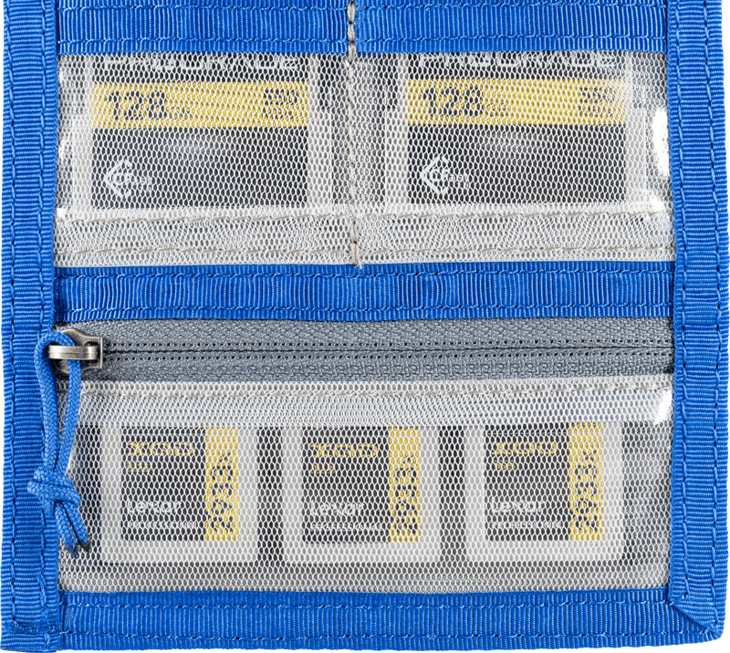 Smidig hopvikbar plånbok för 10 CF- eller CFexpress-/XQD-minneskort som enkelt får plats i fickan eller som kan fästas i bältet eller väskan.VAD FÅR PLATS I DEN HÄR VÄSKAN?10 CF-minneskort10 CFexpress- / XQD-minneskortYTTERLIGARE EGENSKAPERKan fästas inuti många av våra produkterUnik färgkombination för enkel identifiering.MATERIALExteriör:Slitstark vattenavvisande beläggning (DWR)Polyuretanbeläggning420D diamant rip-stop nylonKlar polyuretanmesh3-lagers bunden nylontråd